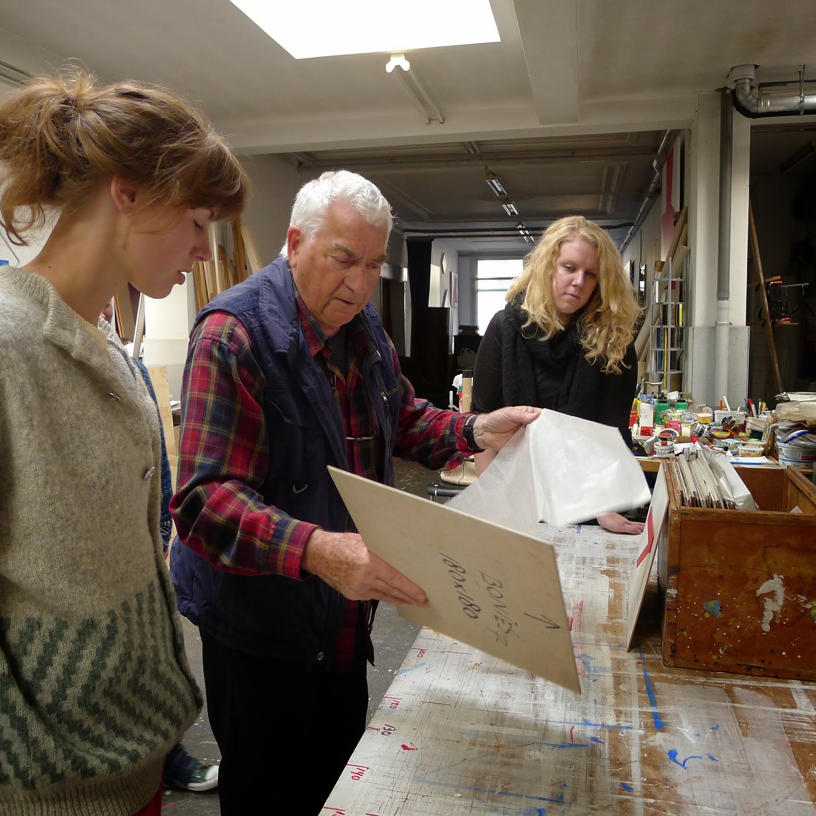 Aan het einde van de dag bezochten we de kunstenaar Bob Bonies, aangezien de nadruk van de workshop op acrylverf schilderijen lag. Bob schildert sinds 1965 met acrylverf. Bij hem konden we niet alleen de verschillen in veroudering vergelijken tussen acrylverf en alkyd verf maar ook zijn objecten van metaal en perspex zien. Dit zijn ook materialen die ook tot het werkgebied van restauratoren van de moderne en hedendaagse kunst behoren.
